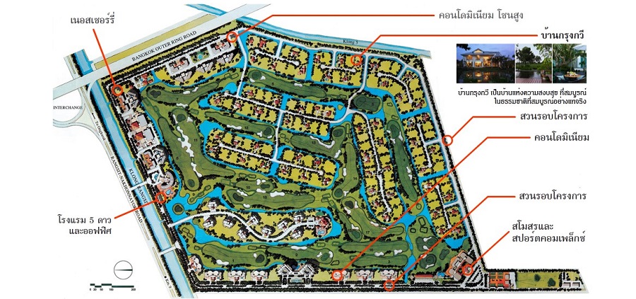สำหรับโครงการบ้านกรุงกวีนั้นมีพื้นที่โครงการทั้งหมดเกือบ 1,000 ไร่ตั้งขนาบคลองรังสิตบริเวณคลอง 4 ไปจรดคลอง 5 ภายในโครงการมีสาธารณูปโภคต่างๆ ครบครัน รวมไปถึงสนามกอล์ฟ ห้องจัดเลี้ยงและสัมมนาต่างๆ นอกจากที่ดินจัดสรรพร้อมขายเนื้อที่ 284-865 ตารางวา ราคาเริ่มต้นที่ 13.5 ล้านบาทแล้ว ยังมีบ้านเดี่ยวพร้อมอยู่ โดยมีให้เลือก 3 แบบ ได้แก่ เรือนมานพ เรือนดุสิต และเรือนศุภฤกษ์ มีพื้นที่ใช้สอยระหว่าง 428-717 ตารางเมตร ราคาขายเริ่มต้น 26 ล้านบาท และบ้านสั่งสร้าง บนเนื้อที่ 106-434 ตารางวา ราคาขายเริ่มต้นที่ 23-68 ล้านบาทอีกด้วย