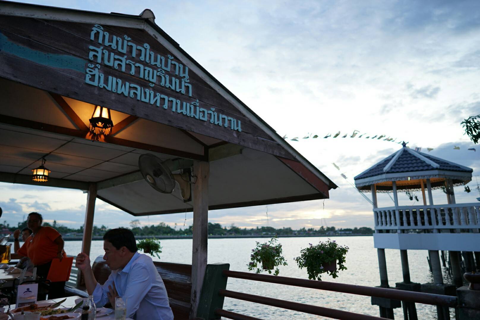 ร้านอาหารริมน้ำชื่อดังที่สุดในย่านพระราม 5 – นนทบุรี บ้านไม้หลังเก่าอายุกว่า 50 ปีที่ถูกดัดแปลงมาเป็นร้านอาหารสไตล์วินเทจ บรรยากาศริมน้ำ พร้อมกับวิวสะพานพระราม 5 กลมกล่อมและลงตัวที่สุดสำหรับที่นี้ บทเพลงที่ขับกล่อมคลอไปกับรสชาติอาหารที่ช่วยเพิ่มความอร่อยให้ปลายลิ้นของนักชิม และหลงใหลไปในวังวนตามคอนเซ็ปต์ร้านที่ว่า “กินข้าวในบ้าน ร่ำสุราริมน้ำ ฮัมเพลงหวานเมื่อวันวาน” กับเมนูแนะนำ กุ้งตะไล, ลุ่มเจ้าพระยา, ฉู่ฉี่ปลาเนื้ออ่อน, ยำคู่รัก, โรตีแกงเขียวหวาน และยำหัวปลีตานี เป็นต้น บรรยากาศดีดีแบบนี้อยู่ไม่ไกลจาก โครงการ ชวนชื่น แกรนด์ ราชพฤกษ์ – พระราม 5 เพียงออกมาจากโครงการกลับรถไปขึ้นสะพานพระราม 5 จากนั้นลงสะพานและกลับรถอีกทีวนเข้าร้านจากใต้สะพานก็จะได้ลิ้มรสความอร่อยริมน้ำแล้ว