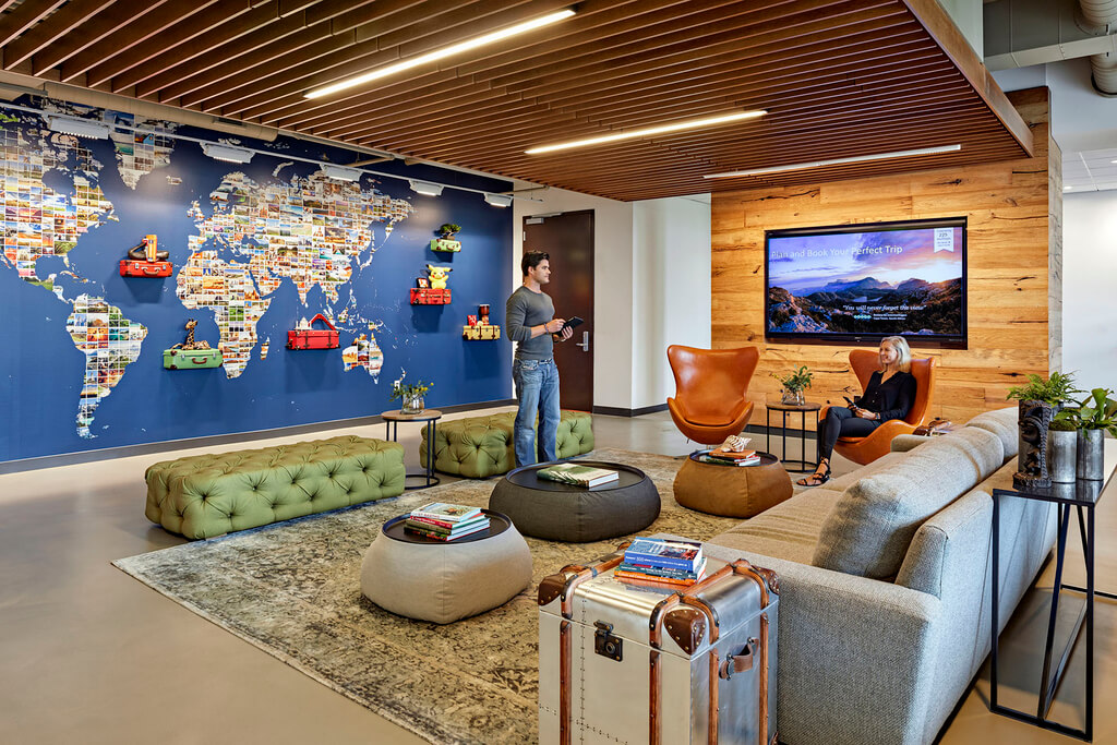 ที่สุดท้ายของบทความนี้ เรามาจบกันด้วย Tripadvisor บริษัทเจ้าของเว็บไซต์การท่องเที่ยวที่ใหญ่ที่สุดในโลก ซึ่งออฟฟิศของพวกเขาตั้งอยู่ไม่ไกลจากเมืองหลวงบอสตันในรัฐแมสซาชูเซตส์  คล้ายๆกับบริษัท Airbnb ที่ได้ใส่จิตวิญญาณของการท่องเที่ยวให้พนักงานได้ซึมซับ  ไม่ว่าจะเป็นจิตกรรมฝาผนังที่สะท้อนรสชาติของวัฒนธรรม ห้องพักผ่อนที่มีรูปถ่ายที่ท่องเที่ยวต่างๆนับพันรูป หรือลานกลางอาคารที่มีการลอกเลียนแบบบันไดสเปนในกรุงโรมประเทศอิตาลี  รายละเอียดเล็กน้อยต่างๆ พวกนี้จะทำให้พนักงานมีชีวิตชีวา และรู้สึกเหมือนกับว่าการเดินทางมาทำงานคือการอกกมาพักผ่อนนั่นเอง