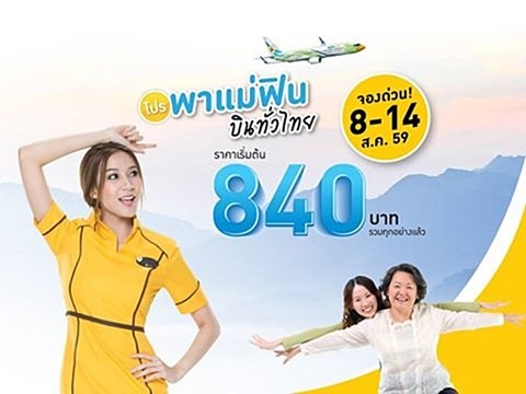 Nok Air พาแม่ฟิน บินทั่วไทย ด้วยราคาถูกสุดเริ่มที่ 840 บาท (รวมทุกอย่างแล้ว) จองได้แล้ววันนี้ถึง 14 ส.ค. 59 เดินทางได้ตั้งแต่วันที่ 15 ส.ค. 59 – 31 มี.ค. 60 ใครอยากพาแม่เที่ยว จัดไป!