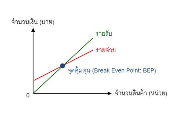 จุดคุ้มทุน หรือ Break Even Point อธิบายง่ายๆ ก็คือ จุดที่รายรับจากการขายสินค้าหรือให้บริการ เท่ากับ ต้นทุนที่ธุรกิจได้จ่ายออกไป เรียกว่า เมื่อไรที่ธุรกิจมีรายรับเท่ากับรายจ่าย ธุรกิจจะคืนทุนเมื่อนั้น แล้วส่วนที่รายรับมากกว่ารายจ่ายขึ้นไป ก็คือ กำไร ซึ่งจุดคุ้มทุนแสดงได้ดังกราฟ