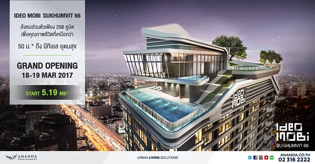 ห้ามพลาดกับงาน Grand Opening ของโครงการไอดีโอ โมบิ สุขุมวิท 66 (Ideo Mobi Sukhumvit 66) ซึ่งจะจัดขึ้นในวันที่ 18-19 มี.ค. 2560 ที่ Sales Gallery ไอดีโอ โมบิ สุขุมวิท 66 (Ideo Mobi Sukhumvit 66)