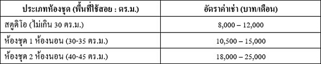 ทั้งนี้ จากการสำรวจอัตราค่าเช่า พบว่า
