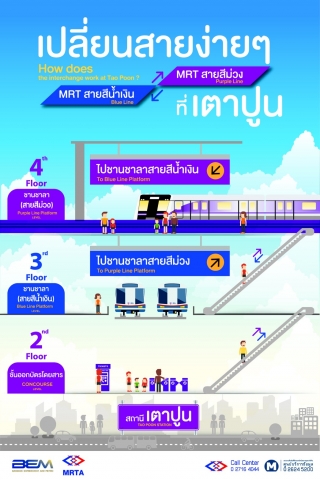 สำหรับวิธีการเปลี่ยนขบวนรถไฟฟ้านั้น หากผู้โดยสารเดินทางมาจากรถไฟฟ้าใต้ดิน MRT บางซื่อ สามารถนั่งต่อเนื่องได้ โดยขบวนรถจะเคลื่อนขบวนสู่รางยกระดับเข้าสู่ชานชลาสถานีเตาปูน ที่ชั้น 3 ส่วนผู้โดยสารที่เดินทางมาจากรถไฟฟ้าสายสีม่วง สามารถเปลี่ยนขบวนรถไฟฟ้า ลงมา 1 ชั้น ที่ชั้น 3 เพียงเท่านี้ ก็จะเดินทางได้ต่อเนื่องจนถึงปลายทางที่ต้องการ
