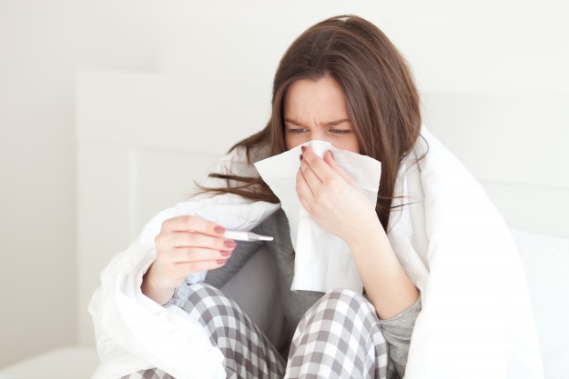 Young woman sick in bed
