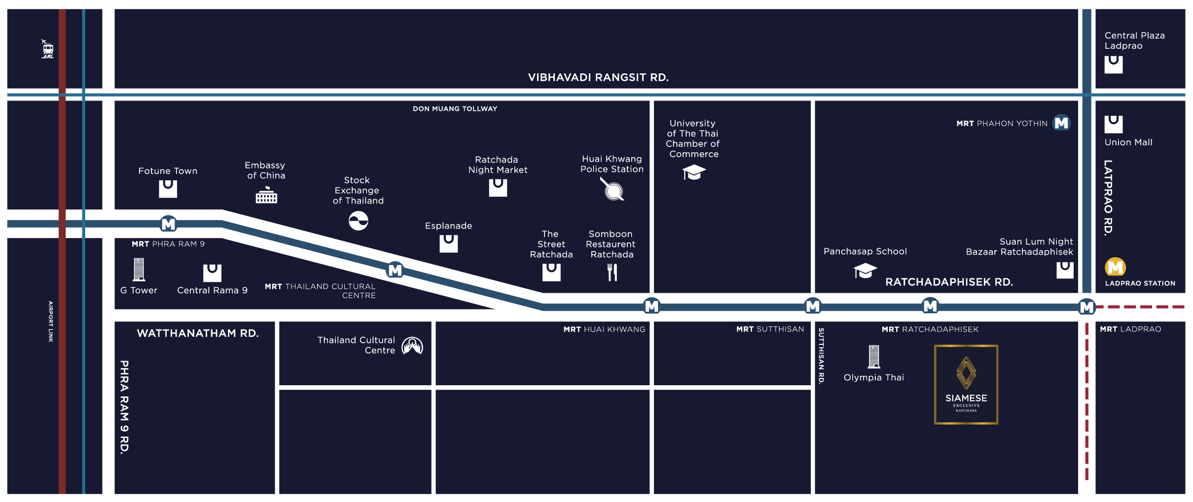 โดยอีกหนึ่งความโดดเด่นบนย่านรัชดาภิเษก คือ โครงการ “ไซมิส เอ๊กซ์คลูซีพ รัชดา” (Siamese Exclusive Ratchada) จาก บริษัท ไซมิส แอสเสท จำกัด (Siamese Asset) ซึ่งเป็นคอนโดมิเนียมโครงการใหม่สุด Luxury มูลค่ากว่า 3,700 ล้านบาท ตั้งบนถนนรัชดาภิเษก มีขนาดเนื้อที่กว่า 2 ไร่ มี 4 อาคาร รวมทั้งสิ้น 622 ยูนิต ตัวโครงการผ่านการออกแบบและคัดสรรวัสดุในห้องพักที่เป็นแบรนด์ชั้นนำ เพื่อ “Asset of life…สร้างกำไรให้ทุกการใช้ชีวิต” เป็นการมอบสิ่งที่ดีและคุ้มค่าที่สุด และยังตอบโจทย์ตรงใจทั้งการอยู่อาศัยและการลงทุน