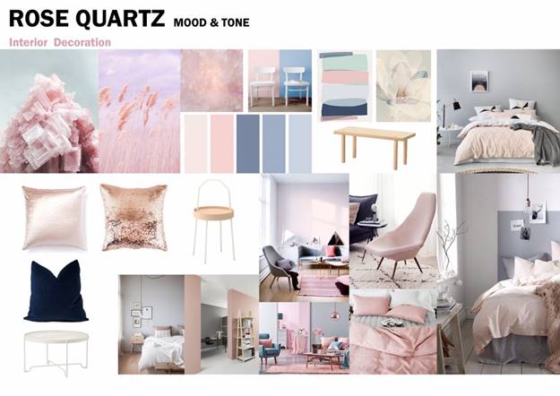 บรรยากาศในห้องนอนดูโปร่งโล่ง เป็นส่วนตัว คุมโทนสีชมพูตามคอนเซ็ปต์ Rose Quartz มีตู้เสื้อผ้าให้หน้าห้องน้ำและโต๊ะเครื่องแป้งขนาดเล็กให้อีกชุดหนึ่ง