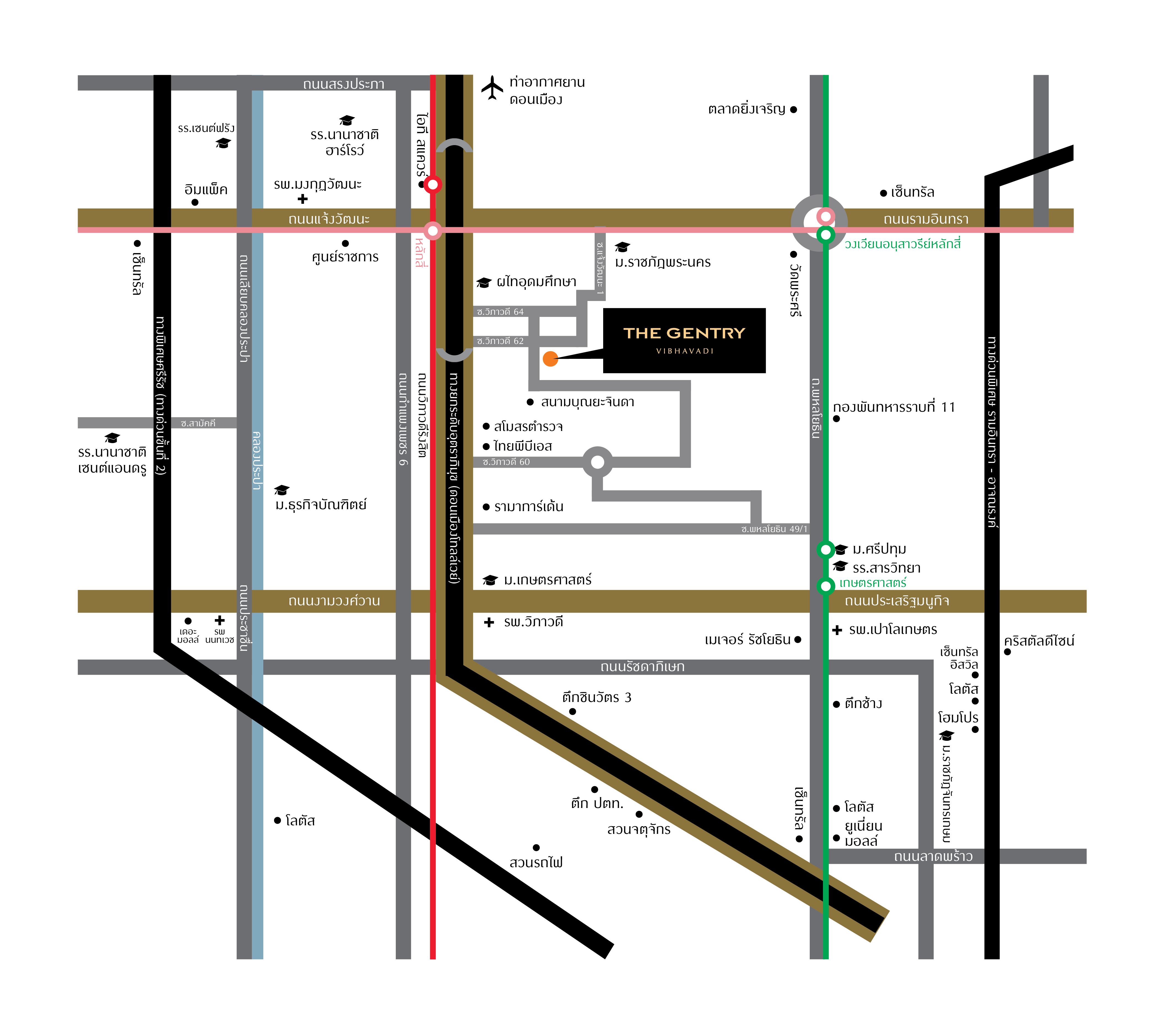 โครงการใหม่เตรียมเปิดตัวจำนวนมาก ทั้งที่อยู่อาศัยแนวราบและแนวสูง เซอร์วิสอพาร์ทเมนท์ ตลอดจนอาคารสำนักงานให้เช่า แต่ถ้าหากโฟกัสที่ที่อยู่อาศัยแนวราบ ด้วยศักยภาพอันโดดเด่นของทำเล บริษัท เอสซี แอสเสท คอร์ปอเรชั่น จำกัด (มหาชน) หรือ SC ASSET จึงเปิดตัวโครงการใหม่ The Gentry Vibhavadi (เดอะ เจนทริ วิภาวดี) รูปแบบโครงการเป็นบ้านเดี่ยว 3 ชั้น พร้อมสระว่ายน้ำและลิฟต์ส่วนตัวภายในบ้าน บนขนาดที่ดินเริ่มต้น 70 ตารางวา พื้นที่ใช้สอยเริ่มต้น 433 ตารางเมตร สงบและเป็นส่วนตัวเพียง 10 ครอบครัว ในราคา 27-50 ล้านบาท