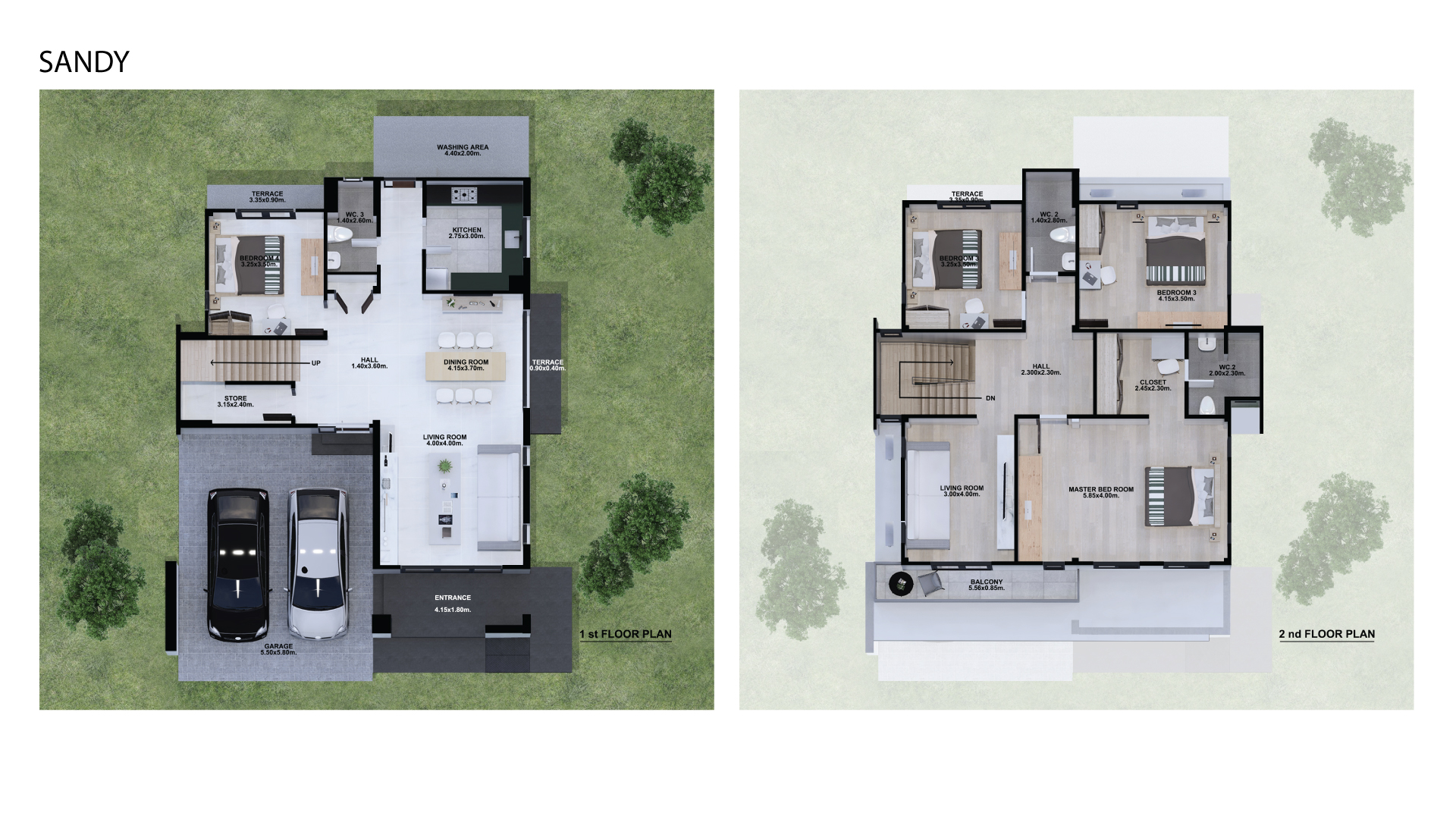SANDY ฟังก์ชั่น 4 ห้องนอน 3 ห้องน้ำ 2 ที่จอดรถ พื้นที่ใช้สอย 256.08 ตร.ม. ขนาดที่ดิน 94.90-100.90 ตร.วา