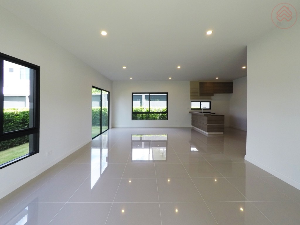 เข้ามาดูในบ้านกันบ้าง ว่าทางโครงการมีอะไรไว้ให้บ้าง ห้องแรกภายในบ้านกัน คือ ห้องรับแขก ที่มี Space เชื่อมกันกับโซนรับประทานอาหาร มี Space ที่กว้างมาก และมีหน้าต่างบานใหญ่ หลายบาน ทำให้ภายในบ้านดูไม่อึดอัด และโล่งสบาย
