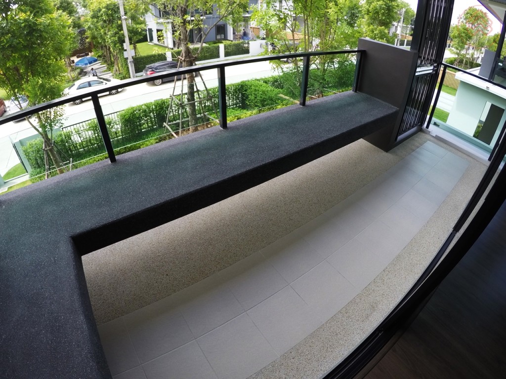 ห้องนอนใหญ่ มีระเบียงที่สามารถออกมารับลม และสูดอากาศบริสุทธิ์ได้ มีพื้นที่กว้างมาก จนสามารถทำที่นั่งริมระเบียงไว้ให้เลย และยังมีหน้าต่างบานใหญ่ทำให้ห้องดูโล่งสบาย