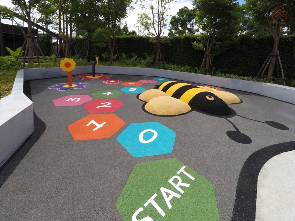 นอกจากนี้ ในพื้นที่ส่วนกลางยังประกอบด้วย สวนส่วนกลาง ให้ความร่มรื่น พร้อมรองรับกิจกรรมเบาของครอบครัว และโซน Educational Playground ที่เป็นมากกว่าสนามเด็กเล่นที่ออกแบบเครื่องเล่นที่แตกต่างเน้นคำนึงถึงพัฒนาการของเด็ก ๆ เป็นหลัก