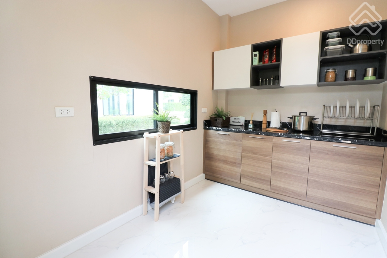 ด้านในสุดของบ้านเป็นส่วนของครัวปิด โดยมีประตูปิดอีกชั้นหนึ่ง หมดกังวลเรื่องกลิ่นอาหารเข้าไปรบกวนภายในบ้าน ในส่วนของพื้นที่ครัวก็มีความกว้างขวาง สามารถ Built-in เคาน์เตอร์ครัวและชั้นเก็บอุปกรณ์ด้านบนได้ มาพร้อมหน้าต่างที่สามารถระบายออกกาศได้ดี