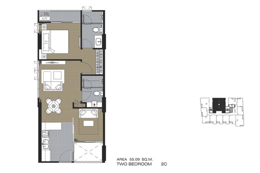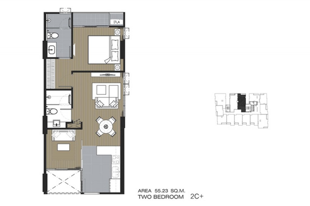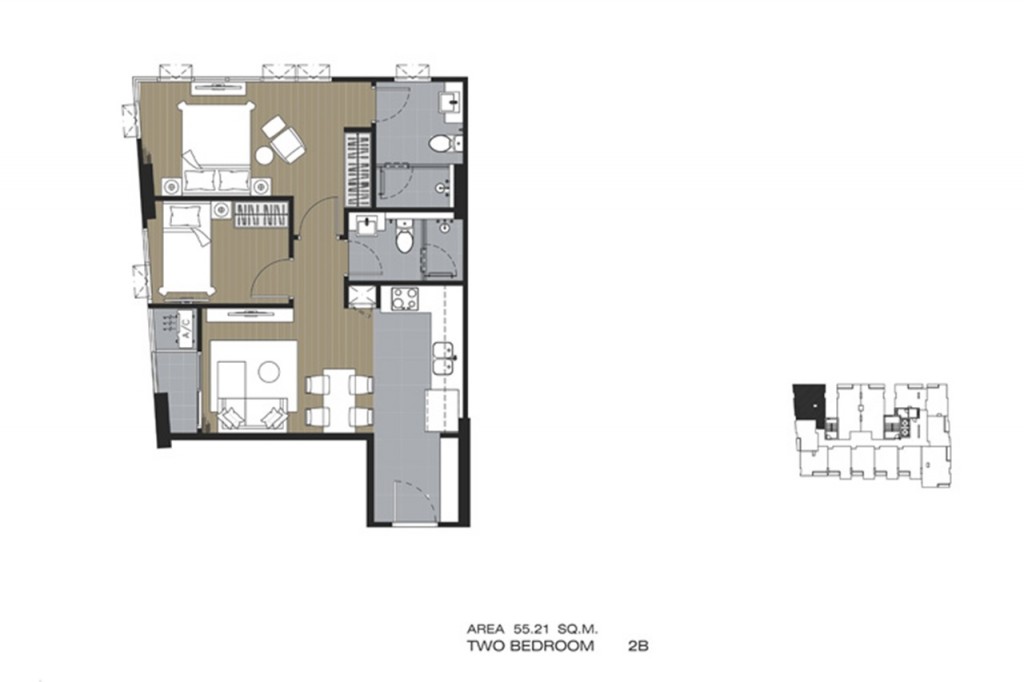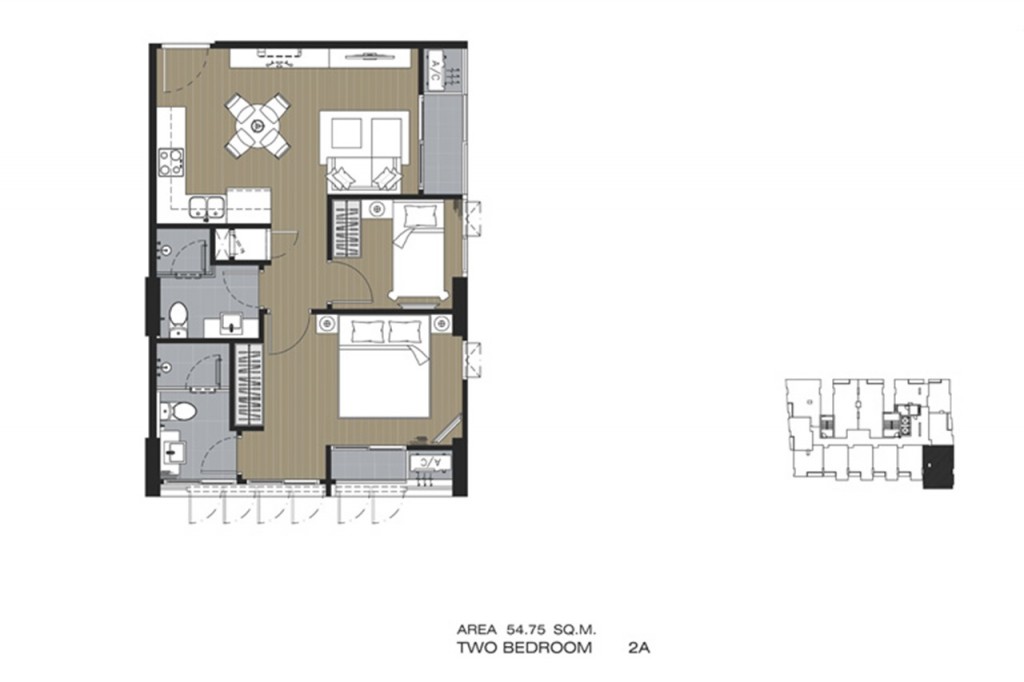 2 ห้องนอน ขนาด 54.75 – 55.21 ตารางเมตร