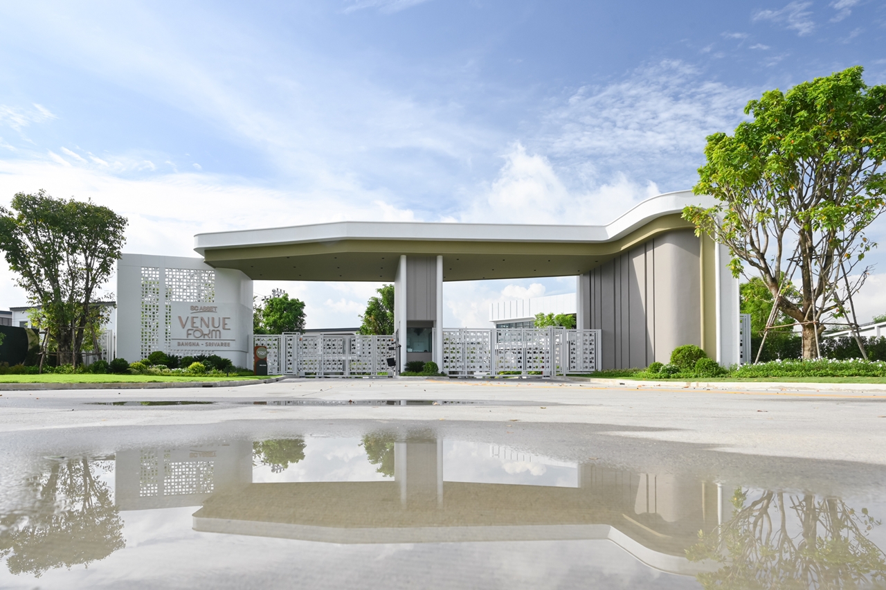 โครงการเวนิว ฟอร์ม บางนา-ศรีวารี (Venue Form Bangna-Srivaree) คือบ้านเดี่ยว 2 ชั้นรูปแบบใหม่ที่ออกแบบในสไตล์ Mid-Century Modern ด้วยการใช้เส้นสายและรูปทรงเรขาคณิตที่สะท้อนถึงความคลาสสิกและสมดุล ฟาซาดของบ้านออกแบบให้มีเส้นสายโค้งมนและพลิ้วไหวดั่งสายน้ำ สร้างความรู้สึกผ่อนคลายและมีชีวิตชีวา มีบ้านให้เลือก 4 แบบ บนพื้นที่ใช้สอยเริ่มต้นตั้งแต่ 188-310 ตารางเมตร พร้อมฟังก์ชัน Vertical Form ที่สร้างความโปร่งโล่ง ด้วยโถงสูงถึง 6 เมตร ซึ่งเป็นเอกลักษณ์เฉพาะของโครงการนี้ ทำให้บ้านดูทันสมัยและน่าอยู่มากขึ้น บ้านทุกหลังยังมาพร้อมนวัตกรรมเพื่อการอยู่อาศัยที่ตอบโจทย์ชีวิตยุคใหม่ เช่น Ruejai Home OS แอปพลิเคชันควบคุมอัจฉริยะ, Active Air Quality ระบบขจัดมลพิษทางอากาศ, Solar Roof, พื้นที่รองรับการติดตั้ง EV Charger, ระบบ Smoke & Heat Detector, Magnetic & Shock Sensor และ Motion Sensor นอกจากนี้ภายในโครงการยังมีคลับเฮาส์หรู ที่ครบครันด้วยสิ่งอำนวยความสะดวกต่าง ๆ เช่น Lobby Lounge, สระว่ายน้ำ, Fitness, Co-working Space, Kids Club, Basketball Court และสวนส่วนกลาง พร้อมกันนี้ทางเข้าโครงการยังได้รับการออกแบบให้อยู่ห่างจากถนนหลัก เพื่อเสริมความเป็นส่วนตัว พร้อมรั้วต้นไม้แนวสูงที่ตกแต่งบริเวณด้านข้างและเกาะกลางถนน เพื่อสร้างบรรยากาศให้ร่มรื่นและสงบ