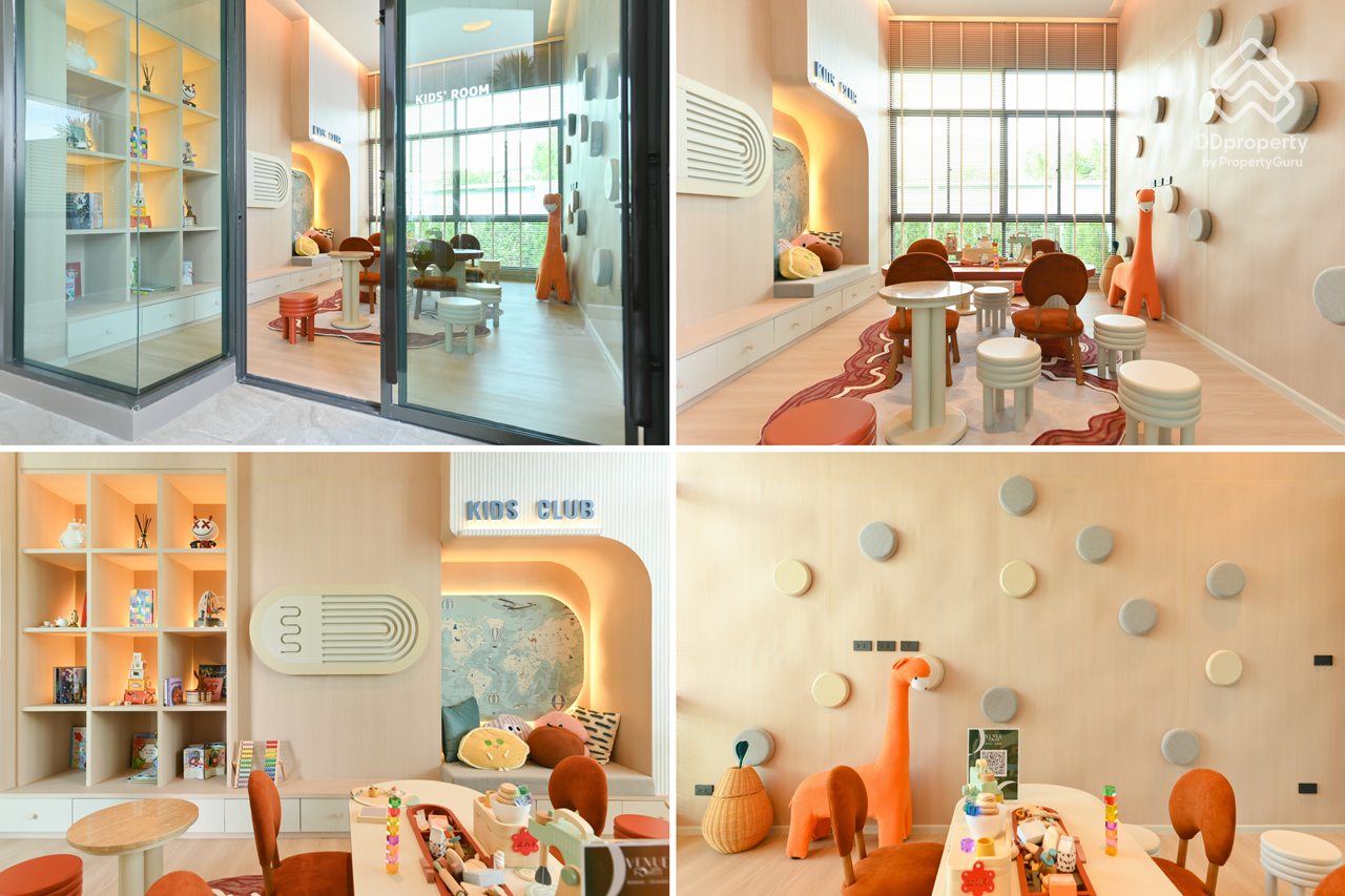Kids Room ถูกออกแบบให้เป็นพื้นที่เสริมสร้างพัฒนาการของเด็ก ๆ อย่างรอบด้าน ภายในจัดสรรมุมนั่งเล่นพร้อมของเล่นเสริมทักษะหลากหลายชนิด ที่ช่วยกระตุ้นทั้งจินตนาการและการเรียนรู้ในรูปแบบที่สนุกสนาน