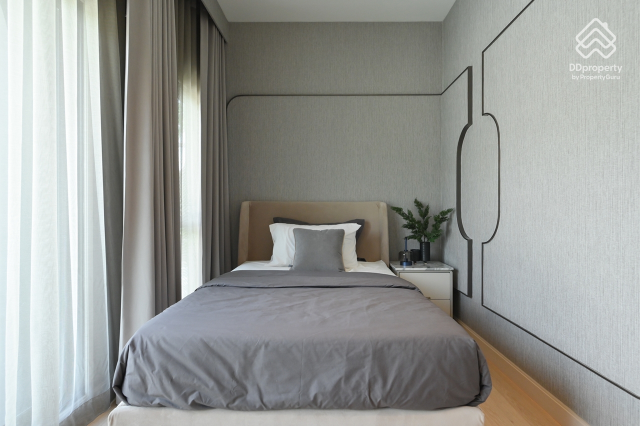 ห้องนอนเล็กห้องที่ 1 มีพื้นที่กว้างขวางและถูกแบ่งฟังก์ชันอย่างชัดเจน เป็นโซนเตียงนอน พื้นที่วางตู้เสื้อผ้า และห้องน้ำในตัว รองรับการใช้งานได้ครบถ้วน