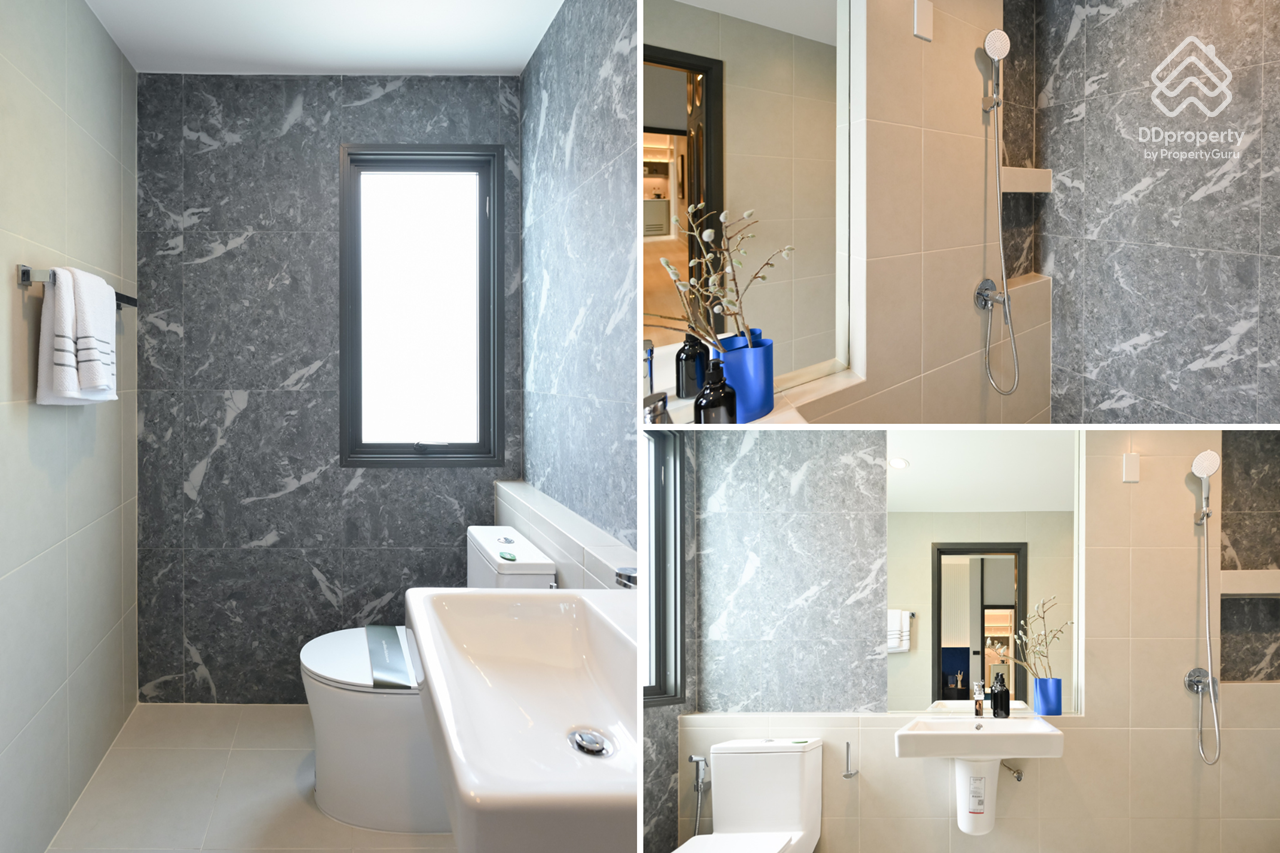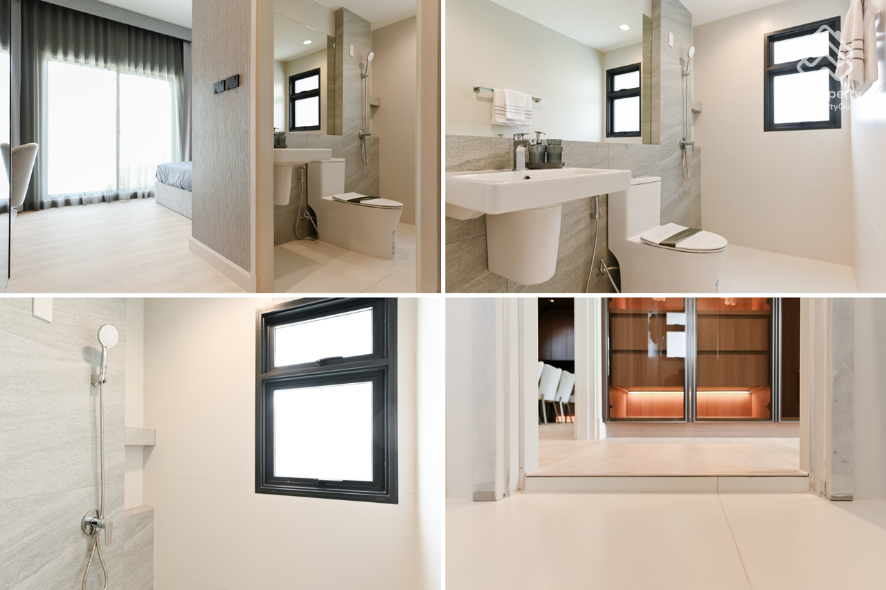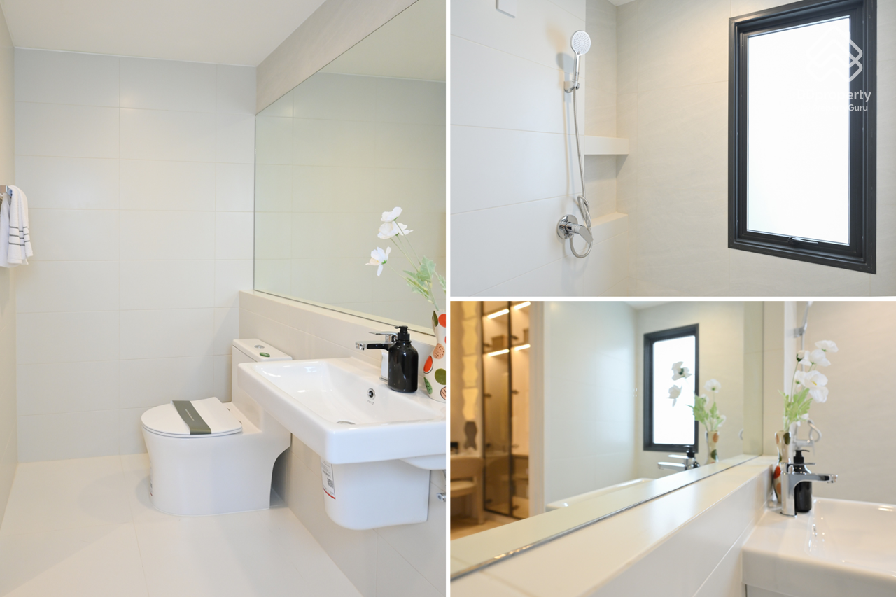 - สุขภัณฑ์: สุขภัณฑ์อัตโนมัติ พร้อมสายฉีดชำระ, ที่ใส่กระดาษชำระ, อ่างล้างหน้า พร้อมกระจก และฝักบัวอาบน้ำ ส่วน Master Bedroom มีอ่างอาบน้ำ พร้อมอ่างล้างหน้าแบบ His & Her
