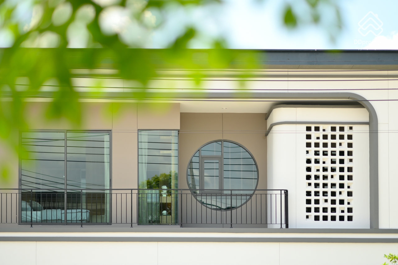 ตัวบ้านได้รับการออกแบบในสไตล์ Mid-Century Modern ที่เรียบง่ายแต่เปี่ยมไปด้วยเสน่ห์ โดยเน้นการใช้เส้นสายและรูปทรงเรขาคณิตที่สะท้อนถึงความคลาสสิก ความสมดุล และความกลมกลืนกับบริบทโดยรอบ ฟาซาดของบ้านโดดเด่นด้วยเส้นสายโค้งมนและรูปทรงที่พลิ้วไหว ช่วยลดทอนความแข็งกระด้าง พร้อมสร้างมิติที่อ่อนโยนและมีชีวิตชีวา