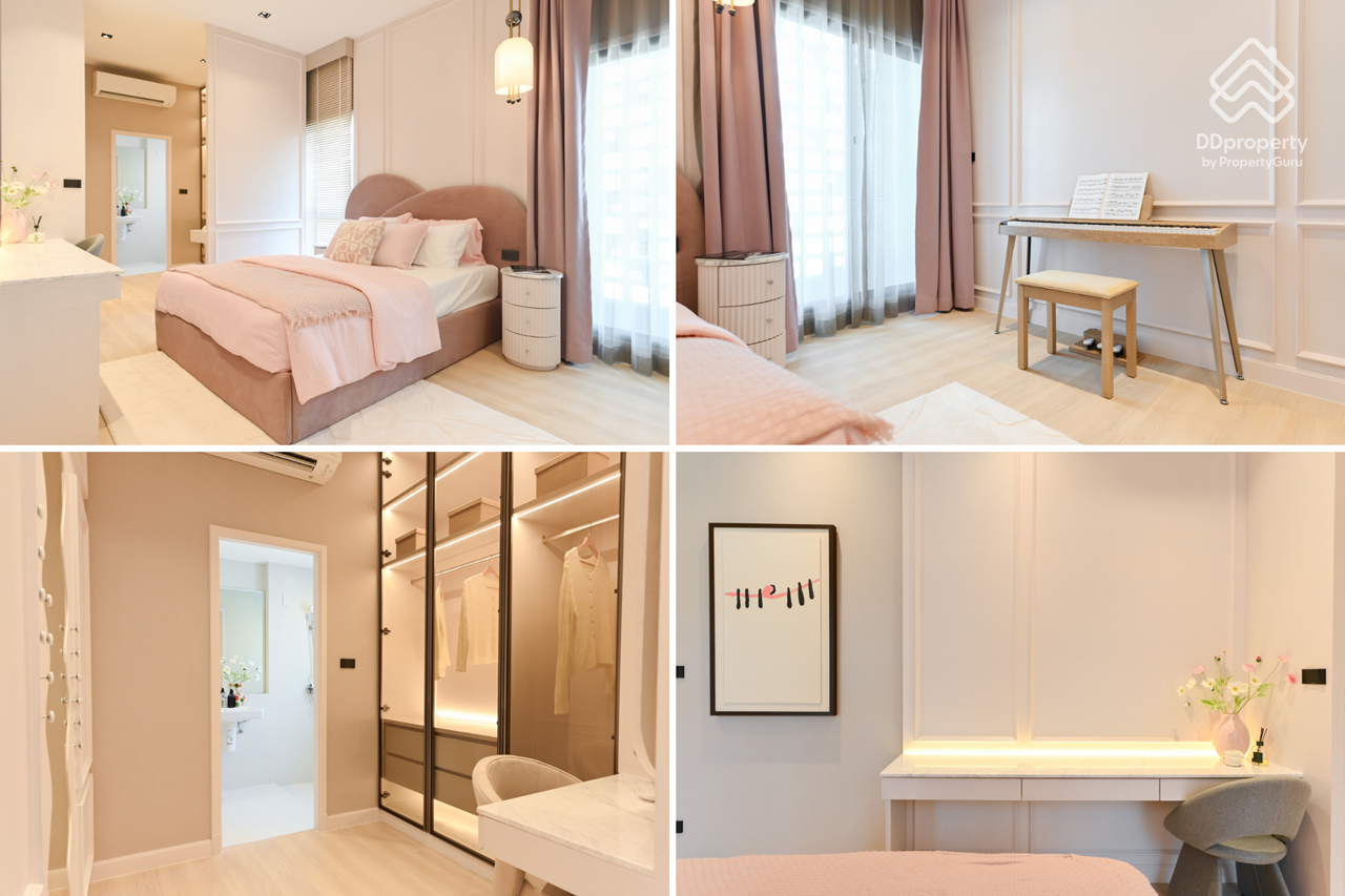 ห้องนอนเล็กห้องที่ 2 ถูกออกแบบอย่างลงตัวโดยแบ่งพื้นที่ออกเป็น 4 ส่วนหลัก ได้แก่ โซนเตียงนอน, Walk-in Closet, ห้องน้ำในตัว และระเบียงขนาดกำลังดี เหมาะสำหรับเด็กผู้หญิง ด้วยการตกแต่งในโทนสีชมพูที่ให้ความรู้สึกอบอุ่น เรียบหรู และน่ารักในเวลาเดียวกัน
