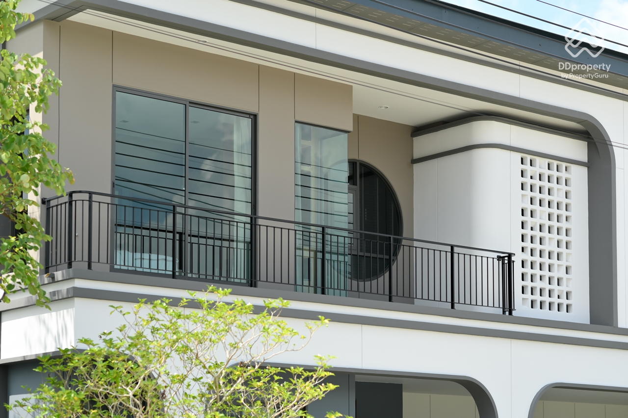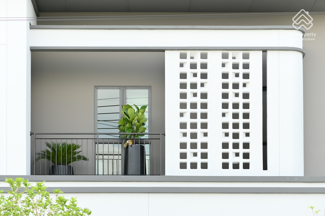 ระเบียงห้องอยู่ด้านหน้า สามารถจัดวางกระถางต้นไม้เพิ่มพื้นที่สีเขียวให้ตัวบ้านได้ รวมถึงสามารถออกมาชมวิวฝั่งหน้าบ้านได้