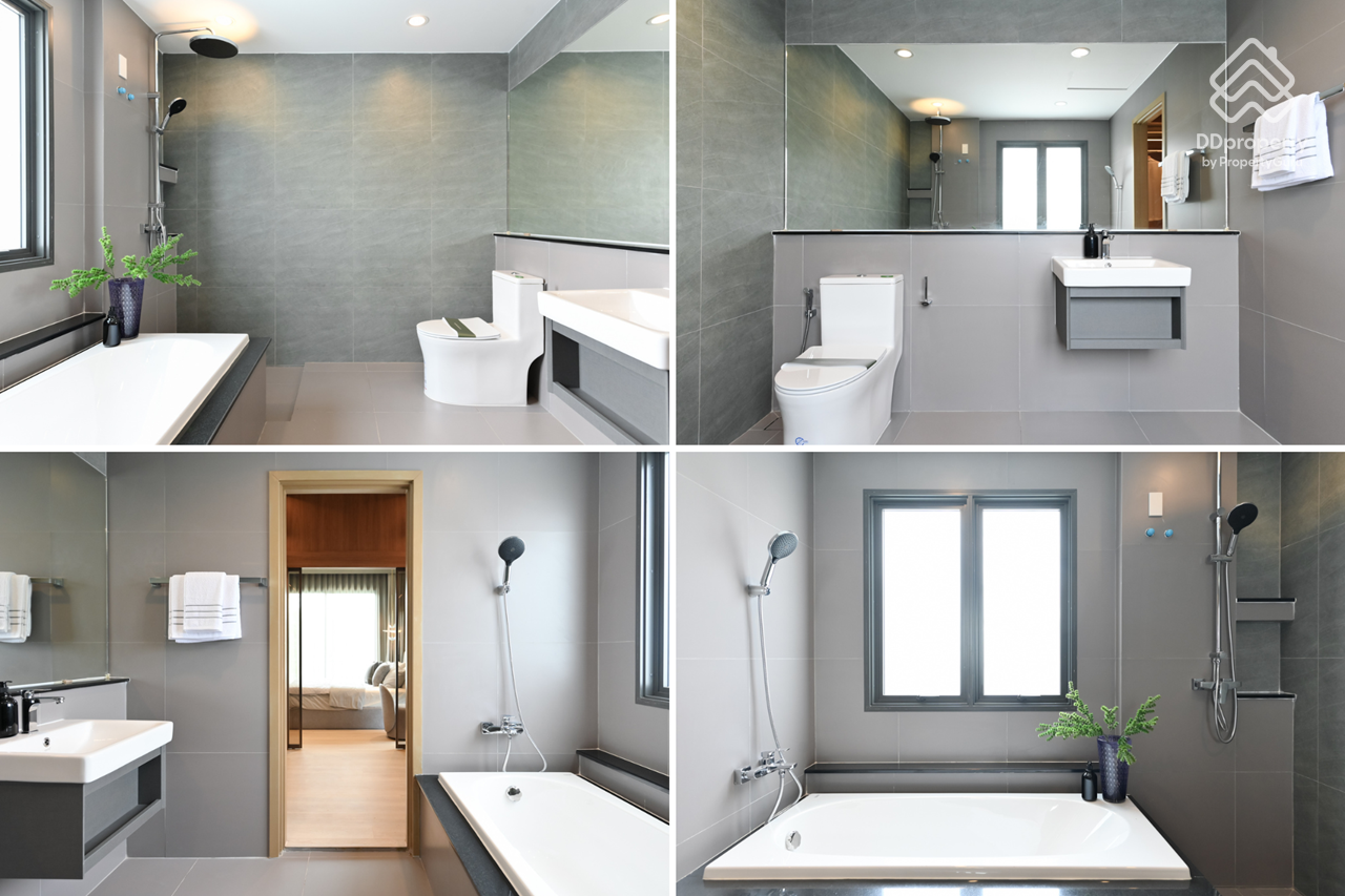 ห้องน้ำมาพร้อมอุปกรณ์ครบครันเหมือนห้องอื่น ๆ ภายในบ้าน พร้อมแยกโซนเปียก โซนแห้งเป็นสัดส่วน