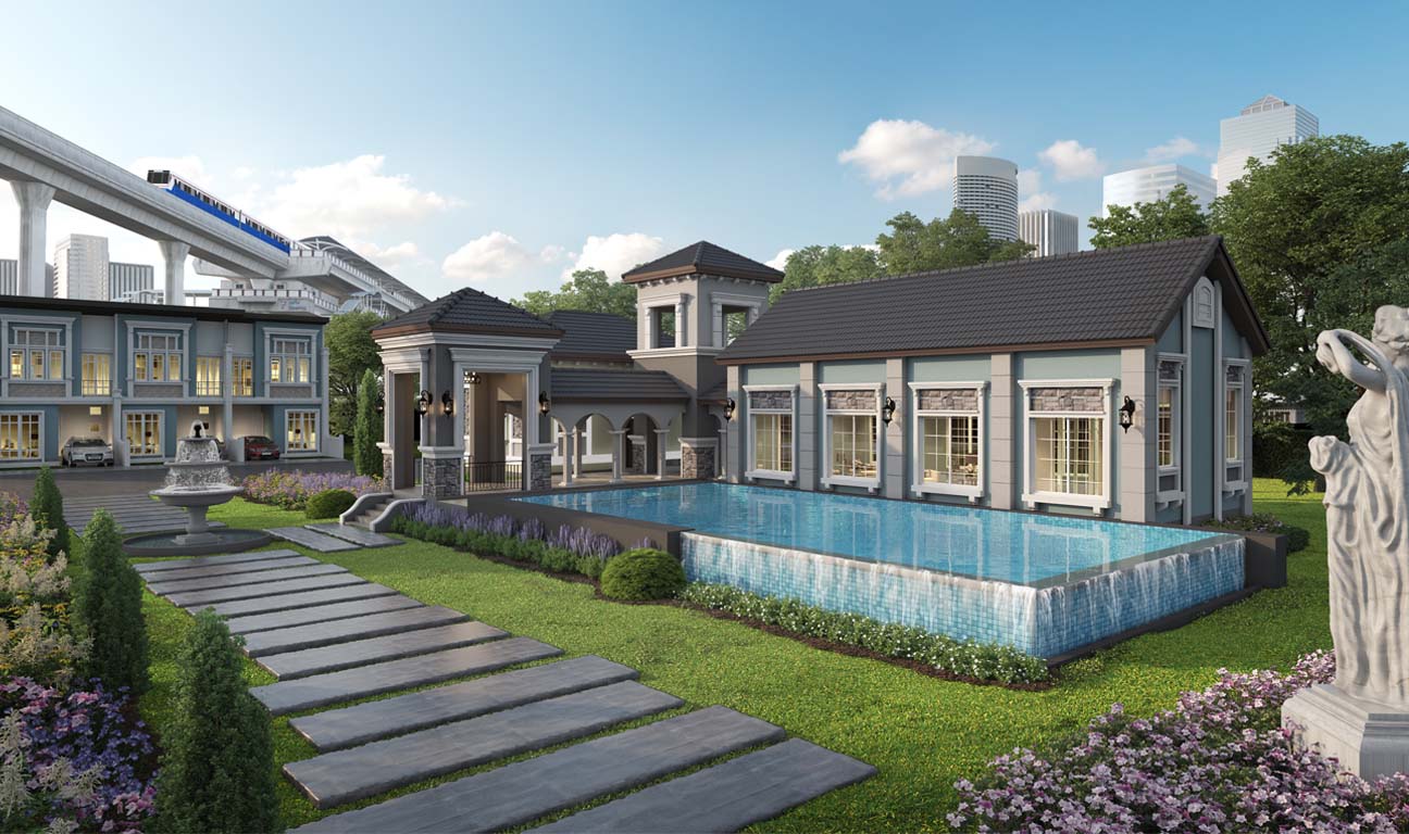 ภาพจำลองบรรยากาศบริเวณสระว่ายน้ำข้างคลับเฮ้าส์