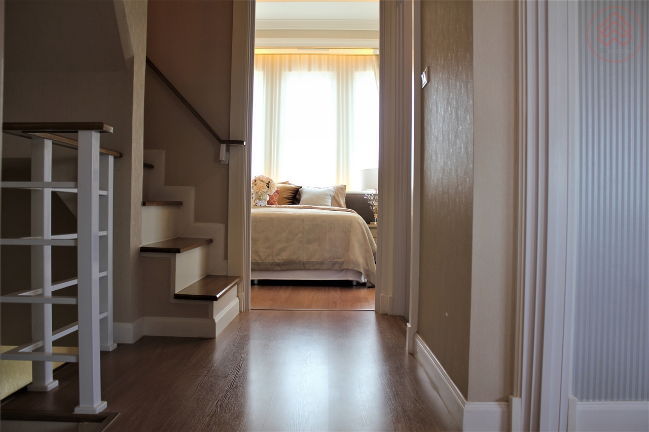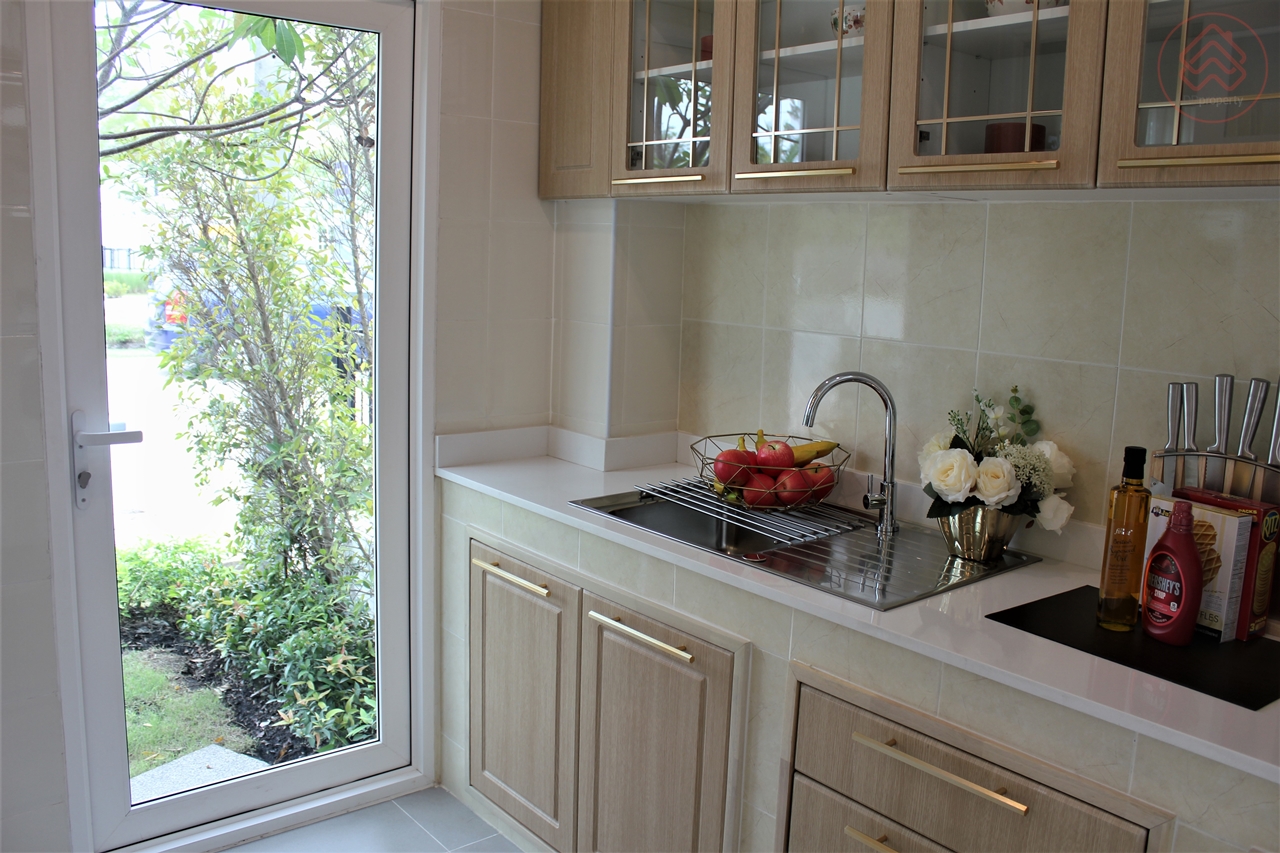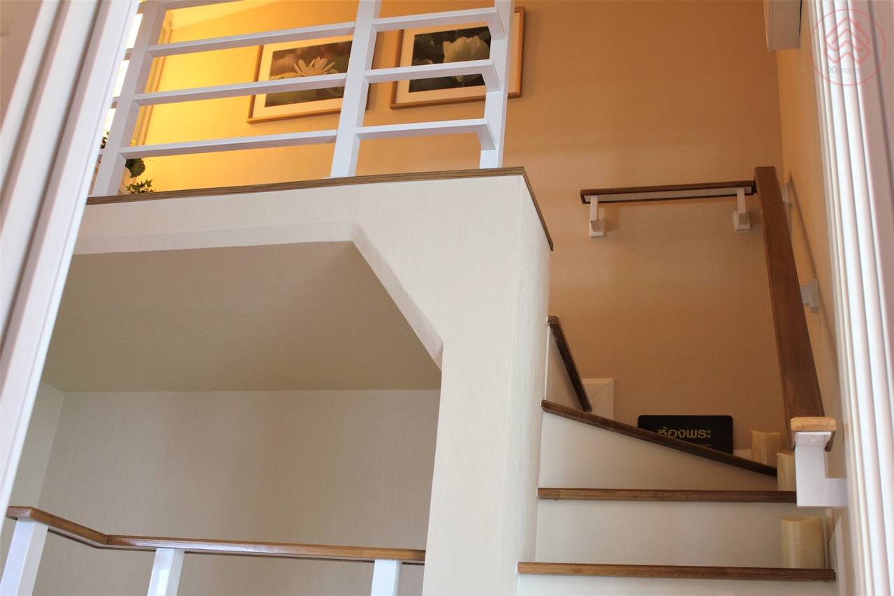 ยกระดับมาตรฐานวัสดุเทียบเท่าบ้านเดี่ยว ไม่ว่าจะเป็นประตู หน้าต่าง UPVC พร้อมใช้กระจกเขียวตัดแสงทั้งหมดเพื่อลดความร้อนภายในบ้าน บันไดคอนกรีตแบบเสริมเหล็กที่แข็งแรง ไม่มีเสียงเวลาเดิน ใช้ระบบไฟดาวน์ไลท์ทั้งหลัง