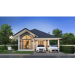 Modern Nordic Style นำเสนอดีไซน์ที่โดดเด่นไม่เหมือนใคร ด้วยการผสานความงามของสถาปัตยกรรมทรงนอร์ดิกสามเหลี่ยมมีโถงฝ้าสูง เพื่อทำให้บ้านรู้สึกโปร่งโล่งกว่าบ้านปกติทั่วไปและเข้ากับเฉดสีที่เป็นเอกลักษณ์ องค์ประกอบสีหลักของโครงการประกอบด้วย: สีน้ำเงิน สีขาว สีเทา และ สีทอง