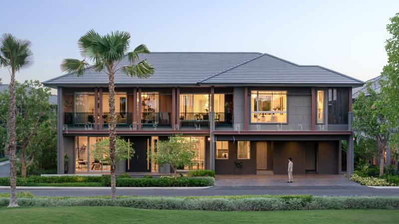 The Palm Bangna-Wongwaen 2 project . It's a new detached house project in 'Pruksa Avenue' that has quite a few additional details from the first project. Starting price is 16 - 25* million baht. The highlights are as follows: Fully functional house: supports 3 generations, has every type of downstairs bedroom, 2nd floor bedrooms with ensuite bathrooms in every room, has 1-2 multipurpose areas that can be flexibly adjusted for use, has a pantry area, an indoor kitchen and an outdoor kitchen for cooking in 3 spots, can park 3-4 cars, and has a maid's room in every unit. There are innovations in living : increasing the convenience of living for residents, including security, reducing energy consumption (Solar Cell), Home Automation, and taking care of air quality with Active Air Flow and Energy Recovery Ventilator systems. Land size and usable area: Wide-fronted house on a large plot of land, starting at 83 – 103 sq m, usable area 330 – 466 sq m. Facilities: Complete common areas with 24-hour online Concierge Service to help take care of residents, including car bookings, golf course appointments, gift delivery, housekeeping or drivers, and ensuring residents have good health with services from Vimut Hospital. Free 1-year Ultimate Card membership card for the highest level of hospitals. Location: The entrance is on Sukhaphiban 2 Road, a road that connects On Nut - Lat Krabang Road to Kanchanaphisek Road. It is near Suvarnabhumi Airport, suitable for those who frequently travel by plane or work within the airport, and not far from Mega Bangna.