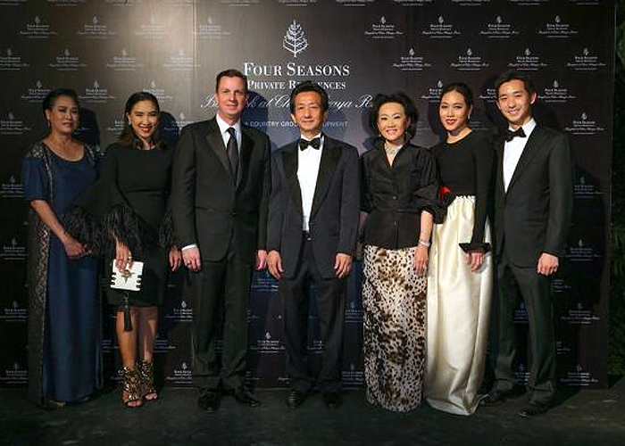 Pictured at the grand opening celebration at the sales gallery of the Private Residences on Bangkok’s Charoen Krung 64 (left to tight) are M.R. Supanee Diskul,Tipanan Krairiksh Srifuengfung, Michael Crawford, President – Asia Pacific, Four Seasons Hotels and Resorts, Sadawut Taechaubol, Chairman, Country Group, Gunnigar Virojanavat, Tirawan Taechaubol, and Ben Taechaubol, Chief Executive Officer of Country Group Development PCL.