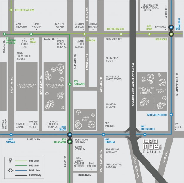 If Sukhumvit Road is the heartbeat of Bangkok, than Rama IV Road is the city’s spine. It’s connected to two major business areas, Sathorn and Asoke, and also close to three of Bangkok’s largest public green spaces, Lumpini Park, a large public park in Bangkok’s CBD with running trails, space for cycling and a lake, Benjakitti Park and Tobacco Park. It’s also a short distance from Terminal 21, Central Embassy and EmQuatier, some of the most impressive shopping malls in Thailand, while a number of smaller community shopping centers like K Village can also be found along Rama IV.