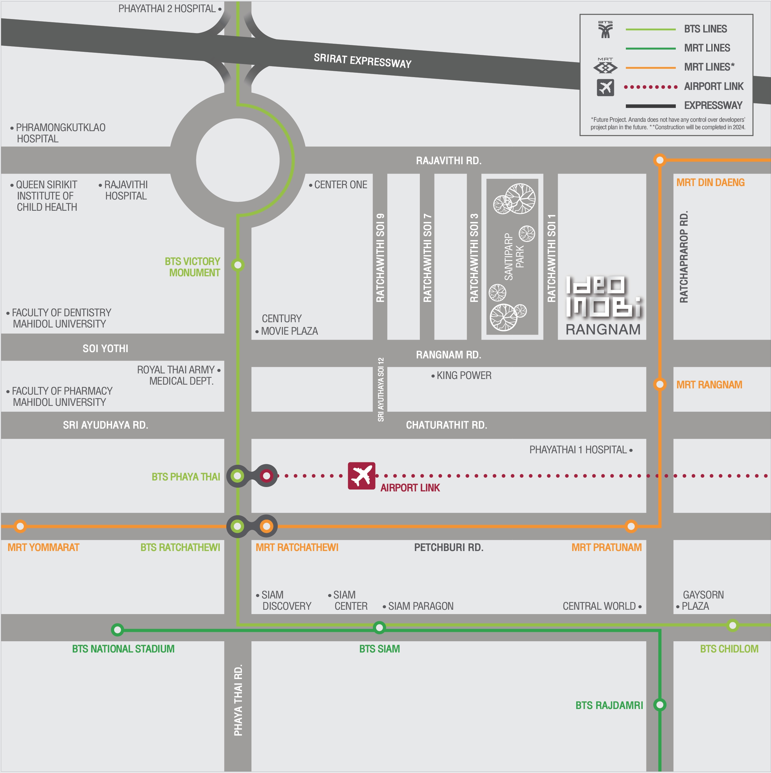 The neighborhood provides connections to Phayathai Road, Ratchaprarop and Si Rat Expressway meaning getting around town is easy. There are plenty of public transportation links available as well with a BTS station nearby and the Orange Line set to have a station close to the condominium. New developments here have been selling quickly and IDEO Mobi Rangnam is expected to be in high demand from buyers.
