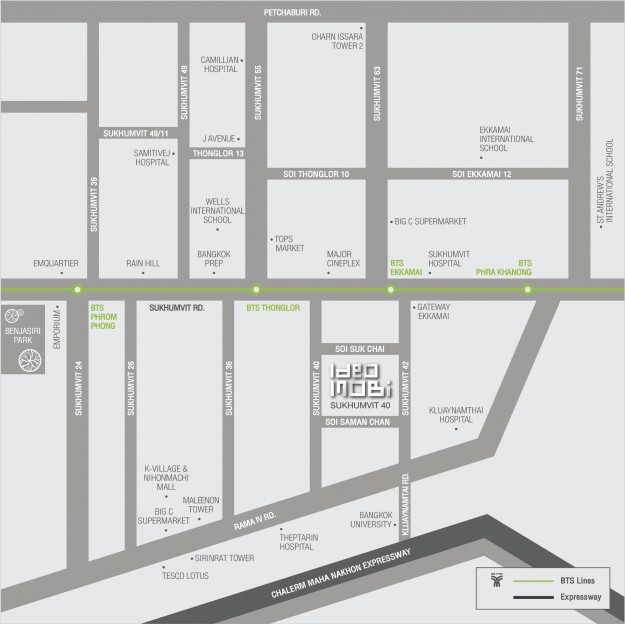 The location is convenient as well with both the Ekamai and Thonglor BTS stations within walking distance of IDEO Mobi Sukhumvit 40. For those looking to spend time outdoors, Benjasiri Park is only two stations away via the BTS and 42 Tee-Off Driving Range can be reached in less than five minutes by car.