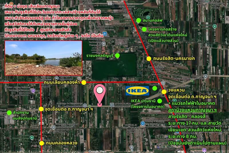 Prime land on the frontage road of Kanchanaphisek (outer ring road), near IKEA Pathum Thani and Khlong Luang Road. Ideal for investment!