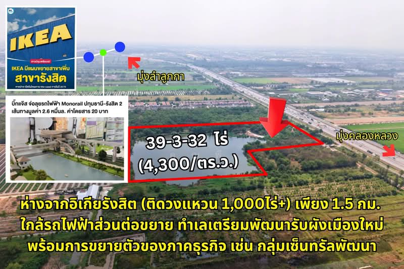 Current PSM at ขายที่ดินติดเลียบกาญจนาภิเษก คลอง 5 (ถนนรอง) ใกล้อิเกียปทุมและถนนคลองหลวง เหมาะซื้อลงทุน! is about ฿1,098 / sqm.