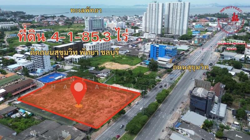 ขายที่ดินพัทยา ติดถนนสุขุมวิท สร้างตึกสูงได้ เห็นวิวทะเล ที่สวยทำเลดี (In1), Chon Buri (Pattaya)