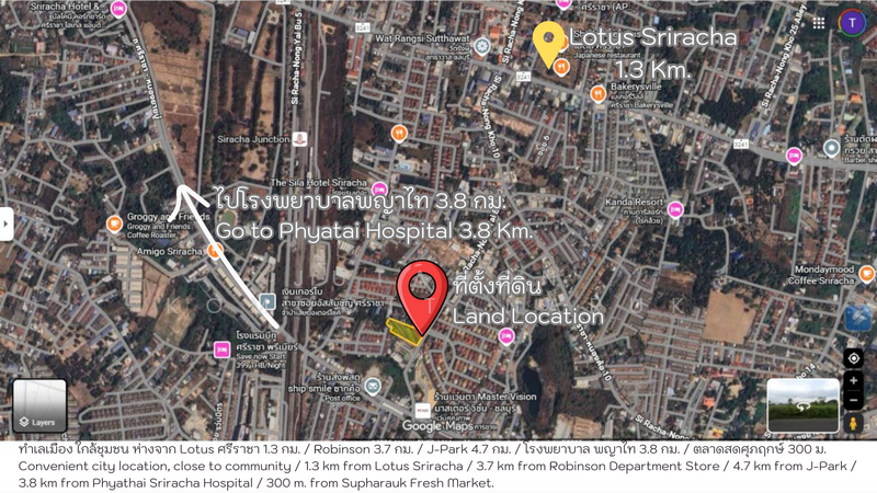 ขายที่ดินศรีราชา ชลบุรี ผังสีส้ม ใจกลางชุมชน เจ้าของขายเอง เหมาะพัฒนาโครงการทาวน์โฮม-คอนโด Low-rise is located at Surasak, Si Racha, Chon Buri (Pattaya) Surasak Si Racha Chon Buri (Pattaya).