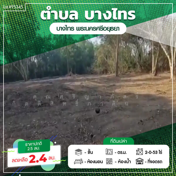 The sale price of this unit at ขายที่ดินเปล่า 2 ไร่ 53 ตรว. ต.บางไทร อ.บางไทร จ.พระนครศรีอยุธยา is ฿2,400,000.