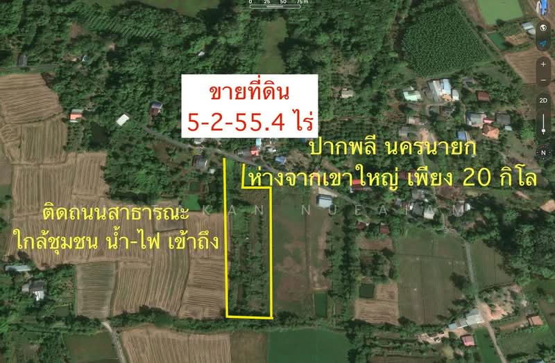 ขายที่ดิน 5-2-55.4 ไร่ เกาะหวาย ปากพลี นครนายก 20 โลถึงเขาใหญ่ ติดถนนสาธารณะ is located at Ko Wai, Pak Phli, Nakhon Nayok Ko Wai Pak Phli Nakhon Nayok.
