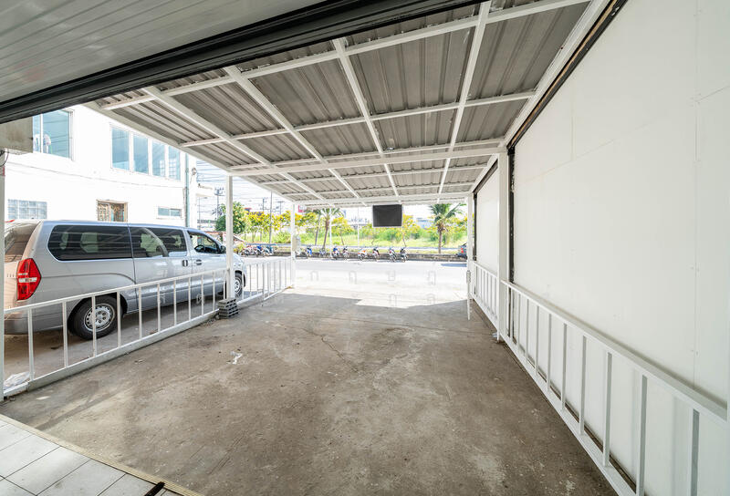 ชั้น 1 มีห้องโถงใหญ่ 1ห้องนอน 1ห้องน้ำ ปั้มน้ำแท็งค์น้ำ มีพื้นที่ใช้สอยกั้นแยกด้านหลัง ประตูไฟฟ้า