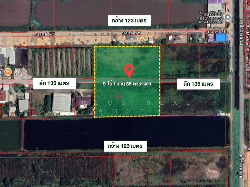 ขนาด 9 ไร่ 1 งาน 85 ตารางวา เหมาะสำหรับพัฒนาโครงการที่อยู่อาศัย หรือการลงทุนระยะยาว