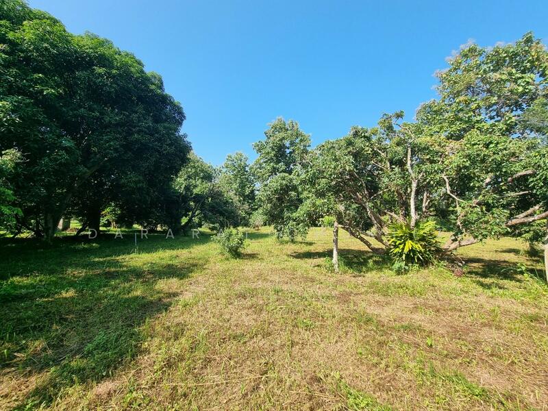 The property comes with a red Garuda title deed and features a raised golden teak wood house and a teak barn. The land is already in use with various fruit trees and vegetables, making it ideal for buyers seeking usable land rather than vacant plots.