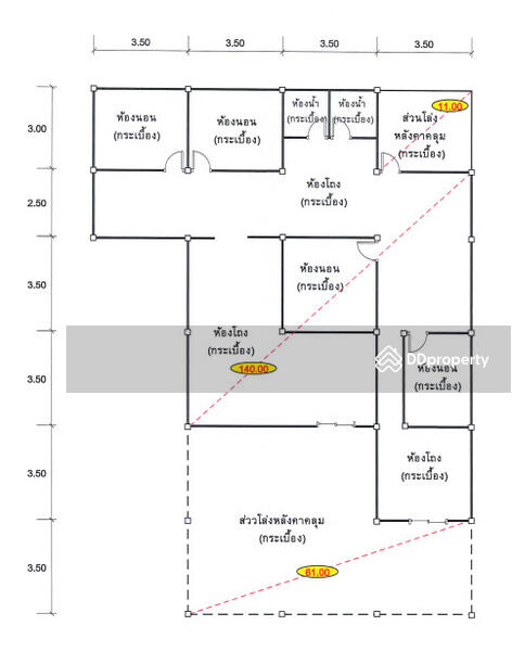 Floor size of this unit at ติดถนนสายบ้านส้มเฟือง-บ้านบางด้วน is 212 sqm.