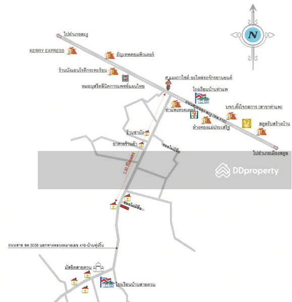 ตึกแถวชั้นเดียว ติดถนนสาย สต. 3038 จ.สตูล