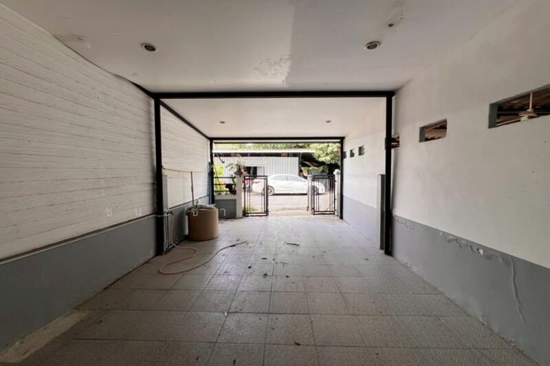 การตกแต่ง : สภาพบ้านต้องปรับปรุง ภายในต่อเติมหลังคาโรงจอดรถพร้อมปูกระเบื้องแกรนิโต้ มีระแนงปิดด้านข้าง 2 ฝั่ง ฝ้าทีบาร์ฉาบเรียบ และต่อเติมเคาท์เตอร์ครัวมีซิงค์ล้างจาน ติดปั้มน้ำ+แท็งค์น้ำ