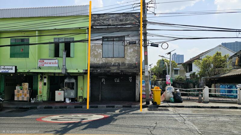 For sale: 2-storey shophouse, 12 sq.wah, directly on Thoet Thai Road, only 350 meters from Talat Phlu, ideal for a café or restaurant.