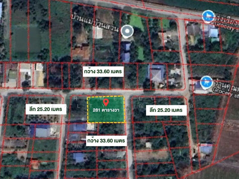 เนื้อที่ 281 ตารางวา l กว้าง 33.60 เมตร l ลึก 25.20 เมตร l หันหน้าทางทิศตะวันออกเฉียงเหนือ