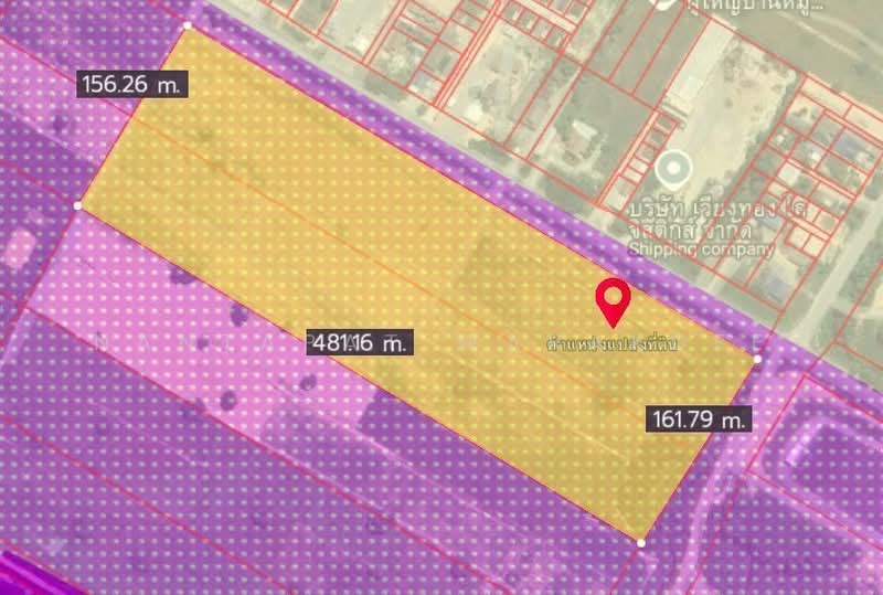 Land for sale in Rayong, 48 rai, next to Road No. 15, 480 meters wide, purple checkered zone.