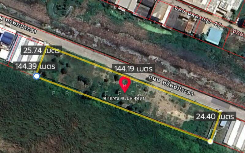 รูปแปลงสี่เหลี่ยมผืนผ้า ติดถนนสาธารณะ ถนนทรัพย์ประชา